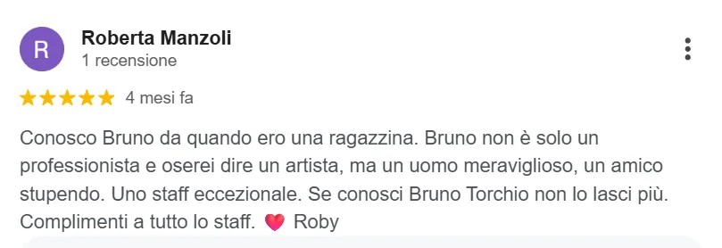 “…Uno staff eccezionale. Se conosci Bruno Torchio non lo lasci più…”